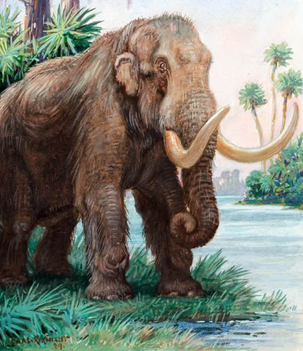 大约1.28万年前,北美洲乳齿象灭绝。气候变化和疾病可能是它们走向灭绝的主要原因,克罗维斯猎人的捕杀同样是一个不可忽视的因素。一种理论认为,克罗维斯人通过加拿大西部一条无冰的走廊迁移到南部,他们使用带有尖头的石制武器猎杀大型动物。