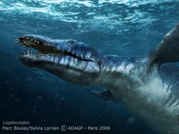 滑齿龙是有史以来最强大的水生猛兽,侏罗纪晚期,它们庞大的身影在四片巨型桨鳍的驱动下,威严地划破浅海水域,宣泄着无形的霸主气势!滑齿龙的长颚里满部尖锐的牙齿,在这样一台吞噬机器前,鳄鱼、利兹鱼、鱼龙甚至其他上龙都要退避三舍,否则必难逃厄运。滑齿龙的鼻腔结构使得它在水中也能嗅到气味,这样滑齿龙就可以在很远的地方发现猎物行踪。除了要上浮呼吸外,滑齿龙一生都在水中度过,因此它们也是卵胎生动物,喜欢在浅海域产仔。直到最近科学家能确定的最大成年滑齿龙不过是18米,但2003年在墨西哥出土了一具18米的上龙(可能是滑齿龙)化石,而它不过是一只幼兽!如果它成功长大,那肯定会大到骇人听闻的地步。