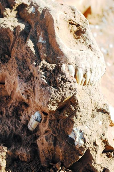 甘肃和政发现剑齿虎头骨化石 来源: 中国化石网 时间:2011年11月28日 12:54 甘肃和政发现剑齿虎头骨化石 11月25日,甘肃和政古生物化石国家地质公园桦林古动物化石保护馆工作人员,在对古生物化石出露点化石进行抢救性挖掘过程中清理出一具剑齿虎头骨化石。该保护馆埋藏化石主要为三趾马动物群化石,代表性动物为三趾马。 甘肃经济日报 朱旭龙 摄 上一篇 下一篇 TAG: 化石 剑齿虎