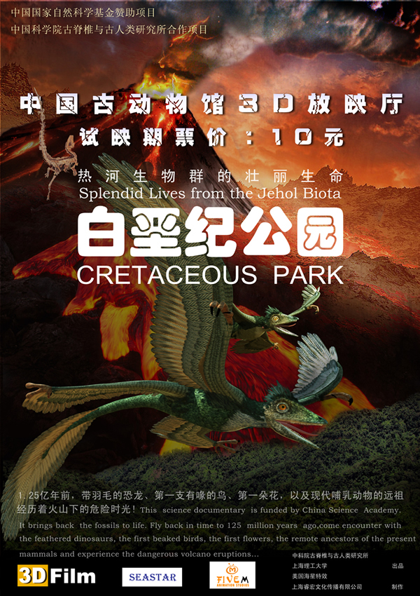 由广电总局电影局、国家新闻出版总署音像管理司和中国科教电影电视协会共同主办的第六届科蕾奖评审结果日前已经揭晓,并于2011年12月17日在中国科技会堂举行了隆重颁奖仪式。以热河生物群为主题的科普影片《白垩纪公园》荣获了该奖项三等奖。