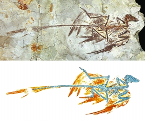 用收藏于北京自然博物馆的一块保存有精美羽毛的小盗龙化石标本,北京自然博物馆馆长孟庆金博士与美国科学家带领的中美科研团队再次揭示了一个不争的事实——亿万年前的一些小型兽脚类恐龙身上覆盖着羽毛。科研人员还联手为这一距今一亿两千万年的小盗龙披上了亮丽的黑色羽衣。该研究成果刊载于最新一期《科学》杂志上。