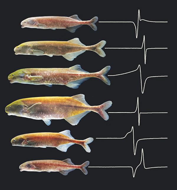 研究者通过实验发现,有的弱电鱼能够感知弱电脉冲并作出反应,而有的则不能。这种差别产生的根源在于脑部一个叫“外侧核”(exterolateral nucleus)的区域,这个区域能对电信息进行阐释。Carlson猜测,在5000-6000万年前,某类祖先弱电鱼的外侧核区逐渐增大并分裂为二,这种改变使得它们拥有了侦测并理解电信号的能力。