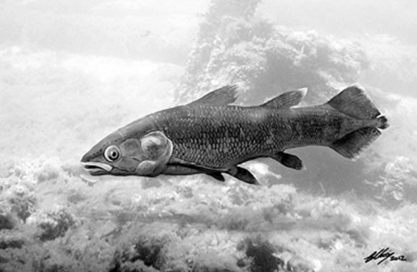吃鱼的时候,没人会去吃鱼鳍,因为上面没肉。不过,肉鳍鱼却不同,它的鳍上肉可发达了,简直有点像一条腿!4亿年前,早期肉鳍鱼的一支就仰仗着这肉鳍,一步步爬向了陆地,进化成了千姿百态的陆上动物。可是,肉鳍鱼的另一支——空棘鱼却在后来的岁月里,神奇地停止了进化,一直忠实遗传着老祖宗的体型相貌,直至今天。朱敏介绍,在4亿多年前的早泥盆世,空棘鱼曾经历过一次快速演化,“这种早期鱼类迅速繁衍、迁徙,从中国云南、澳大利亚一直扩散到全球各地。”他说,“就在这几百万年间,原始空棘鱼很多形态特征都进化到了现代空棘鱼的模样,从此几乎不再改变。”1938年,第一条现生空棘鱼——拉蒂迈鱼在非洲东海岸被捕捞到时,整个学术界都为之震惊:它怎会和3亿多年前的老祖宗长得一模一样?