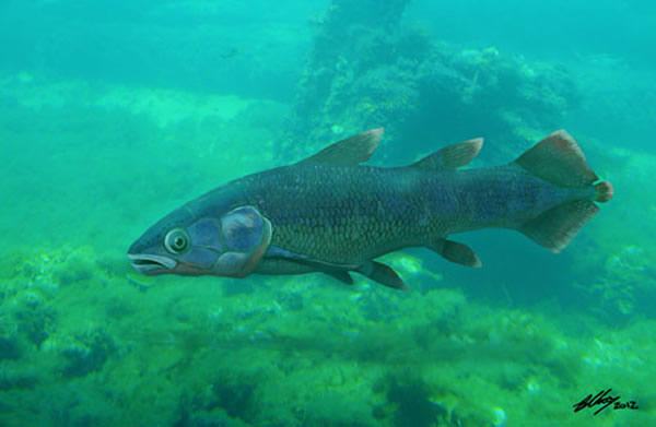 最早的现代型空棘鱼——云南孔骨鱼复原图(Brian Choo绘)