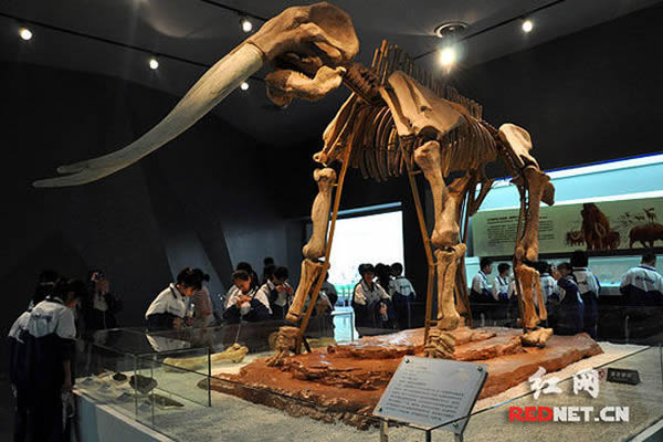同时展出的东方剑齿象是1985年从涟源斗笠山的一处溶洞中采集而来的,属于我国西南地区更新世大熊猫剑齿象动物群中的代表种类。据推测,更新世的大熊猫、剑齿象等动物可能是被古人类当做食物带进洞内的,因此也成为湖南古人类存在的一个间接证据,具有重要的科研、科普价值。