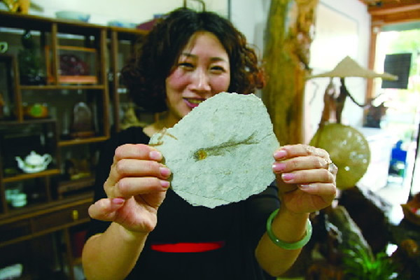 “瞧,这就是我朋友2007年送给我的那块鱼化石。”舒景宁说着小心翼翼地从木柜上取下一块比巴掌大一圈的扁平石头。