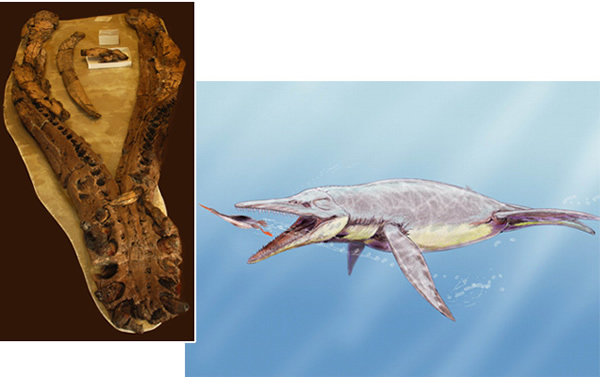 上龙是一种生活在海洋中、类似鲸鱼大小的爬行动物,其头部和鳄鱼相像。生活在侏罗纪晚期的上龙,处于海洋食物链顶层,捕食时非常迅猛,有“海中霸王龙”之称。