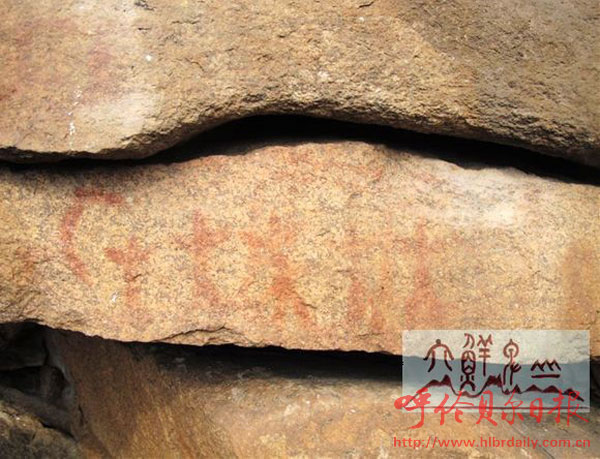 近日,内蒙古大兴安岭东麓鄂伦春旗新发现一处带有“日、月、星、云”红色绘就的彩绘岩画。
