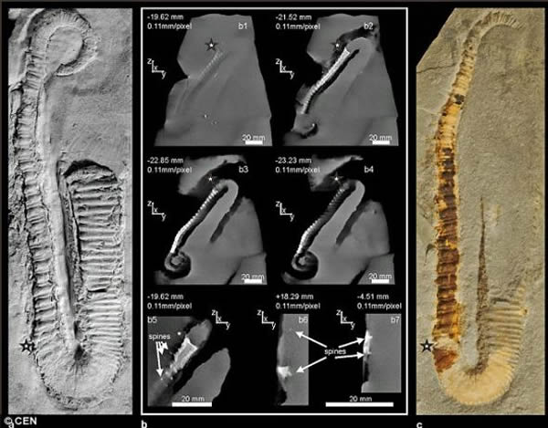 这种动物被称之为“Dissimilites intermedius”,生活在距今1.28亿年前的白垩纪时期。它的化石在海底形成,最后在阿尔卑斯山白云石山山顶的沉积物中发现。科学家表示计算机X线断层摄影术允许他们看到肉眼无法看到的一些细节,帮助他们进一步了解这种古生物。根据他们的研究发现,这种动物的身体被钉状结构覆盖,每一个的长度在3到4毫米之间。