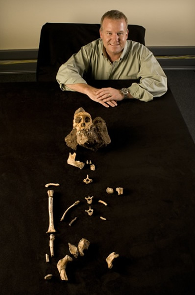 李·伯杰展示古人类化石