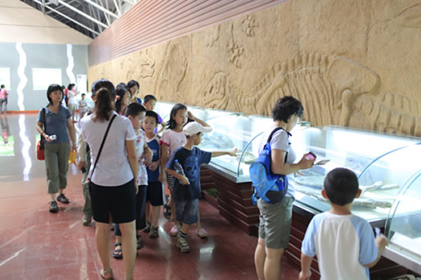 由于第10号热带风暴“达维”的到来影响了行程,但丝毫不影响会员和家长的热情。在当地的专家带领下,会员们参观了诸城地质公园,当看到高9.1米、长16.6米,迄今为止世界上发现的最大的鸭嘴恐龙化石时,会员们都兴奋不已。