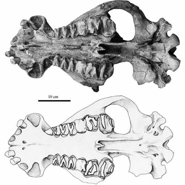 蒙古真恐角兽(Eudinoceras mongoliensis)头骨(IVPP V 18046)冠面(毛方园供图)