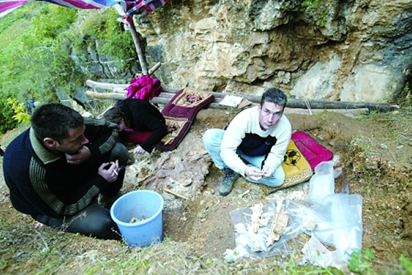 中外专家在龙骨坡遗址进行考察