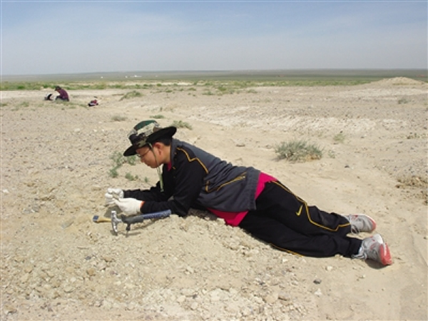 余逸伦在内蒙古二连浩特进行野外考察。