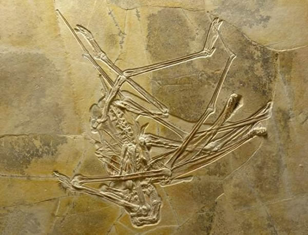 这些翼龙骨骼化石挖掘于德国班贝克地区,保存状态非常完好。它长着非常长的前臂和腿部,适合于水中游动。它的颌部外形颇似火烈鸟嘴部,可使它过滤水中一些小型浮游生物,也包括一些鱼类。考古学家在其胃部中发现了残留的鱼类食物。