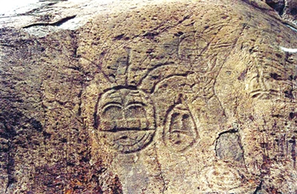 如此一来,好像能解释贺兰山为什么密布环太平洋地区才有的人面像岩画,好像能解释为何澳洲的“贮灵卡”、印第安人部落酋长头像等岩画奇妙地出现在贺兰山口……