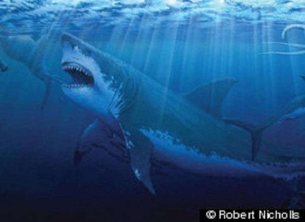 古生物学家相信巨齿鲨曾经在食物链上处于霸王龙的上端