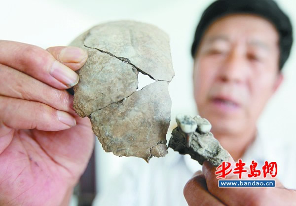 “化石形成至少需要上万年,一旦确定这真是人类头骨化石的话,那将为青岛在万年前就有人类再添力证。”9月27日上午,文博专家、原青岛开发区博物馆馆长李居发对记者说。据介绍 ,近日的一场大雨使黄岛南辛安前河河水水位上升,辛安街道台头村段的河底两岸的泥沙被大量冲刷掉,雨过天晴,收藏爱好者潘进和在河边意外发现了5块骨骼化石,其中有两块疑似人类头盖骨化石。“确实很像,但还需要运用科学手段做更深入的鉴定。”进行了初步鉴定后,李居发表示。