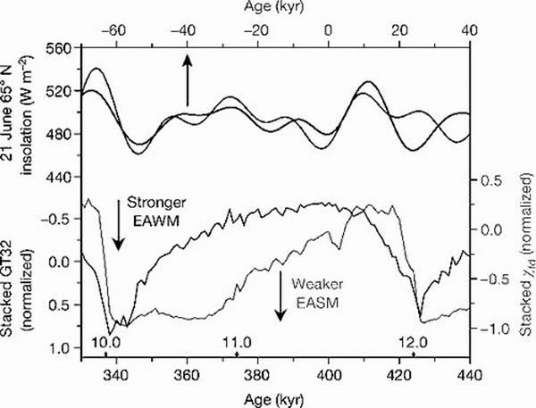 地球绕太阳公转过程中,太阳辐射变化幅度有约40万年的周期,当前地球处在太阳辐射岁差周期性(约2万年)变化幅度最小的时期,这种状况每隔40万年出现一次,是地球轨道偏心率40万年长周期调控的结果。因此,本世纪初40万年前后的间冰期环境演化成为全球古气候研究的一个焦点。