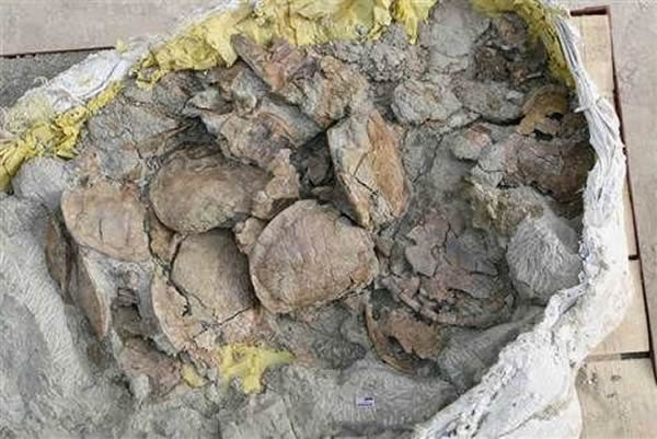 科学家们表示他们在中国境内发现了大约1800个侏罗纪时代的乌龟骨骼化石,它们的化石都聚集在一起
