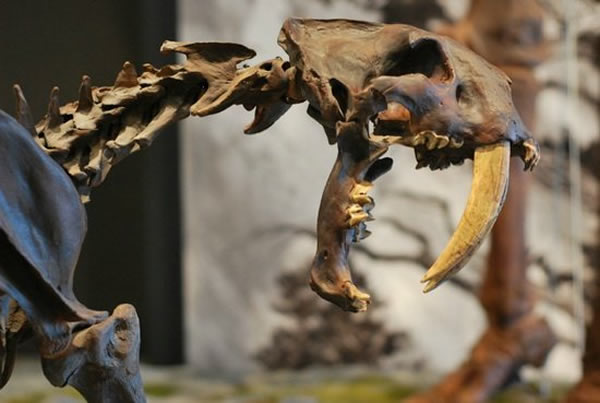 美国犹他州自然历史博物馆的一个剑齿虎标本,科学家最新研究称剑齿虎像吸血鬼一样,不断地啜食猎物的血液