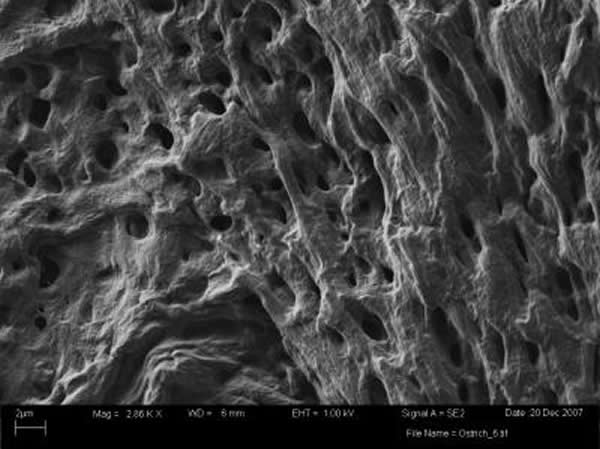 这些标本还被送往多个实验室中进行独立的分析。 研究人员应用扫描电子显微镜来检查该组织的外观和结构,他们还开展了质谱仪和抗体结合实验来辨识其组织蛋白。 质谱分析结果表明,MOR 2598含有胶原蛋白,其氨基酸序列与鸟类胶原蛋白的氨基酸序列非常相似,这对在恐龙与鸟类之间存在着密切的进化上的相互关系提供了进一步的支持