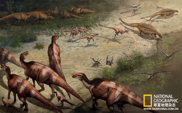 1亿年前的中白垩世时期在綦江的恐龙生活复原图