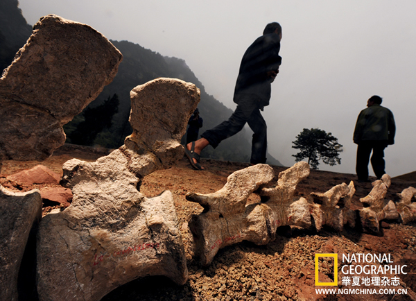 村民经过綦江蜥脚类恐龙的尾椎序列,盆地中的秋天阴雨绵绵,却不减綦江村民参与恐龙化石发掘工作的热情。
