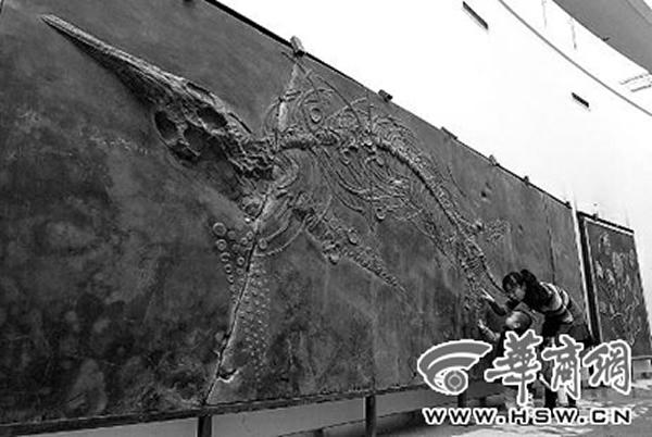 陕西自然博物馆展出大型鱼龙 来源: 中国化石网 时间:2013年1月07日 14:26 陕西自然博物馆展出大型鱼龙 陕西自然博物馆一个大型鱼龙化石前,2岁的淙淙在妈妈的陪伴下好奇地观察。 这个长约7米、高约3米的鱼龙化石是西北地区第一次展出的大型鱼龙化石。淙淙的妈妈说:“他对这里的动植物标本都很好奇热爱,只要一有时间就会带他来参观,能说出每一个展出恐龙的名字。” 据了解,鱼龙是大型陆栖爬行动物进入海洋后进化而成的,最早出现于约2.2亿年前。这条展出的鱼龙化石生前体重约2.6吨。此化石已在陕西自然博物馆安家落户。 华商报 马捷文 杨皓 上一篇 下一篇 TAG: 鱼龙 自然博物馆