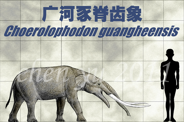 广河豕脊齿象(Choerolophodon guangheensis)和人类的体型对比