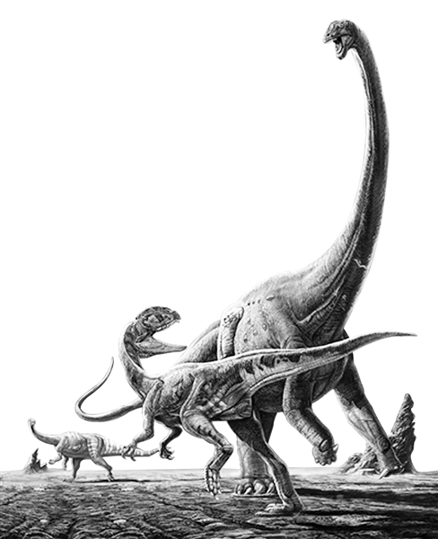 在这些过目难忘的片断之外,我翻着厚厚的书页常常走神,冒出些旁逸斜出的问题,比如:盘古大陆——盘古会不会就是一只恐龙?传说中他那么大,而且他倒下才有人类子孙的繁衍;看到了板龙竭力让自己变得和山一样大,就想难道体积大就是王道?想到各种弱肉强食的社会现象——其实小而迅捷也是基因的生存之道,一般这种生物繁殖能力很强;看到了缤纷多彩的恐龙种类,就不禁想一些技术问题——这么多的基因变异是怎么实现的啊?如果可以给化石测序,倒是可以计算突变率的……