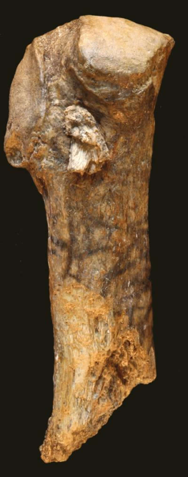 图像显示了乳齿象肋骨上接近尾端的嵌入点