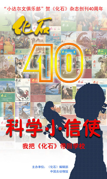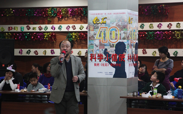 值《化石》杂志创刊四十周年之际,为了更好地服务广大读者,进一步加强与化石爱好者的交流,《化石》编辑部联合中国古动物馆于2012年12月28日晚在中国科学院古脊椎动物与古人类研究所举办了“科学小信使——我把《化石》带回学校”活动,得到了北京市西城区展览路小学、进步小学等近百名学生和家长的积极响应,活动取得了圆满成功。
