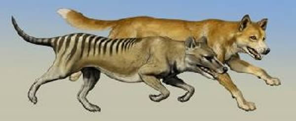 数百万年来,袋狼(Thylacinus cynocephalus)一直统治着澳大利亚,直到4万年前人类开始定居并在4千年前引进了澳洲野狗,将澳洲大陆的袋狼赶尽杀绝,只有流落到塔斯马尼亚岛的孑遗们侥幸存活,但它们仍没逃过灭绝的命运,1936年,最后一只袋狼死在澳洲霍巴特城的动物园里。