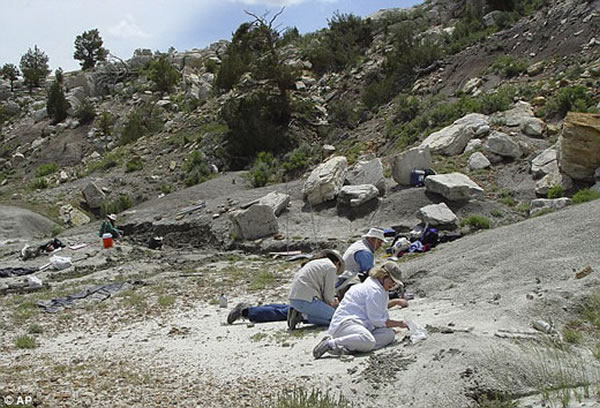 科学家在美国怀俄明州科摩断崖搜寻恐龙化石