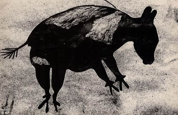1万年前澳大利亚北部土著居民在岩石上绘画的双门齿兽外形