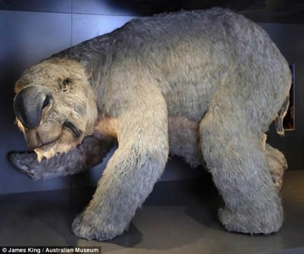 有袋动物diprotodon与体型庞大的袋熊长相相似,体重3吨,身长达14英尺(4.27米),2.5万到200万年前它生活在澳大利亚地区。科学家在该地发现第一副这种史前巨兽的完整骨架后,同意它是食草动物。尽管它不吃肉,但是遭到它的袭击仍会非常致命。