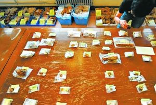 这是从北京周口店遗址第1地点清理发掘出的部分标本。周口店遗址第1地点抢救性清理发掘工作已取得阶段性重要成果。