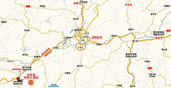 本次会议的会场和食宿地点均设在关岭自治县坝陵大酒店。该酒店位于关岭县城北关索镇大龙潭,靠近G60沪昆高速(镇胜高速)关岭出口处,距贵阳150公里,安顺70公里,黄果树20公里。会议报到日当天(10月20日),组委会将在贵阳机场和安顺火车站安排接站服务。关岭自治县地理和交通位置如简图所示。