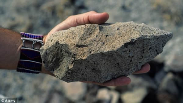 在肯尼亚发现的一把石质手斧,科学家认为它们是直立人使用的工具